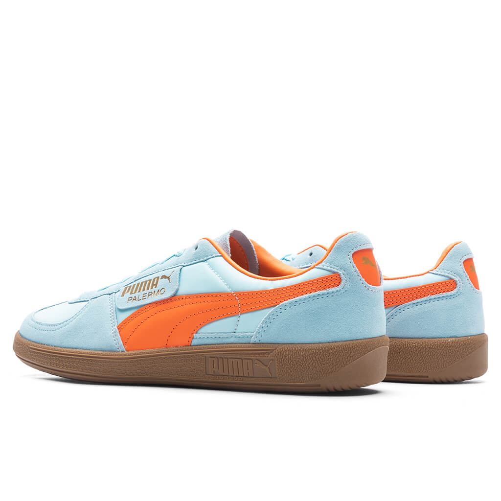 Making its debut in football stadiums back in the â80s, the Puma Palermo makes its return with inspiration from Palertmoâs iconic fruit vendors known locally as âfruttivendolo.â The silhouette features a leather upper with suede overlays and a leather Puma Formstrip. The design features Palermo branding in a gold-foil manner at the upper as well as at the heel. A gum rubber outsole underneath completes the remainder of the sneaker.
