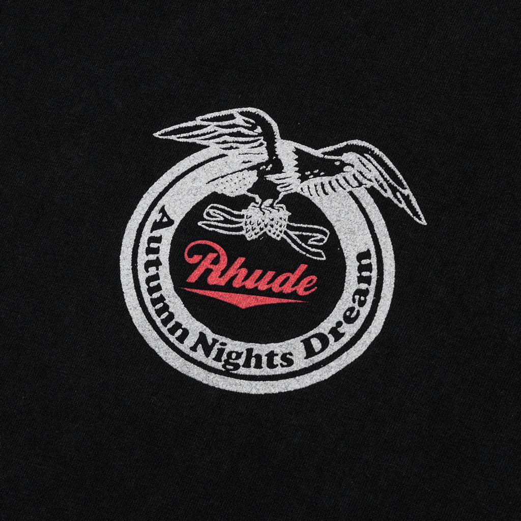 Rhude is a Los-Angeles based fashion label created by designer Rhuigi Villasenor. The contemporary menswear brand is known for recreating wardrobe classics with a modern twist. Using premium textiles, Rhude brand showcases drapey fits with fine cut-and-sew construction. Pictured is the Rhude Eagle Logo Tee in Black.